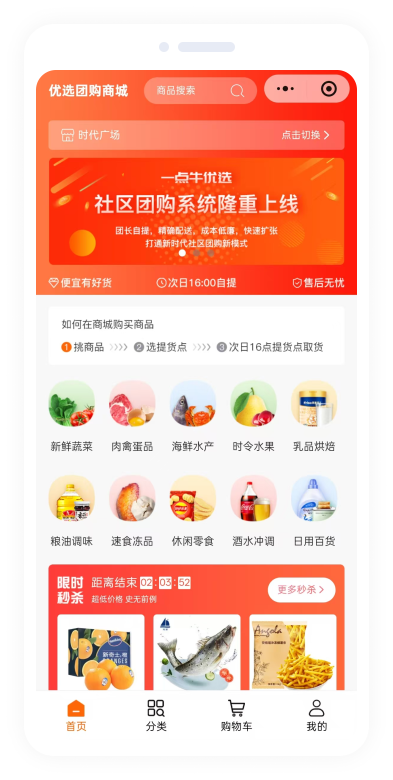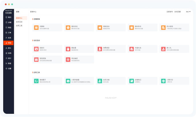 丰富营销活动,秒杀、团购、限时抢购,天天都有新玩;提高产品的曝光度和销量,特价促销拉动店铺人气吸引新粉丝激活老用户,有效提升用户购买转化。