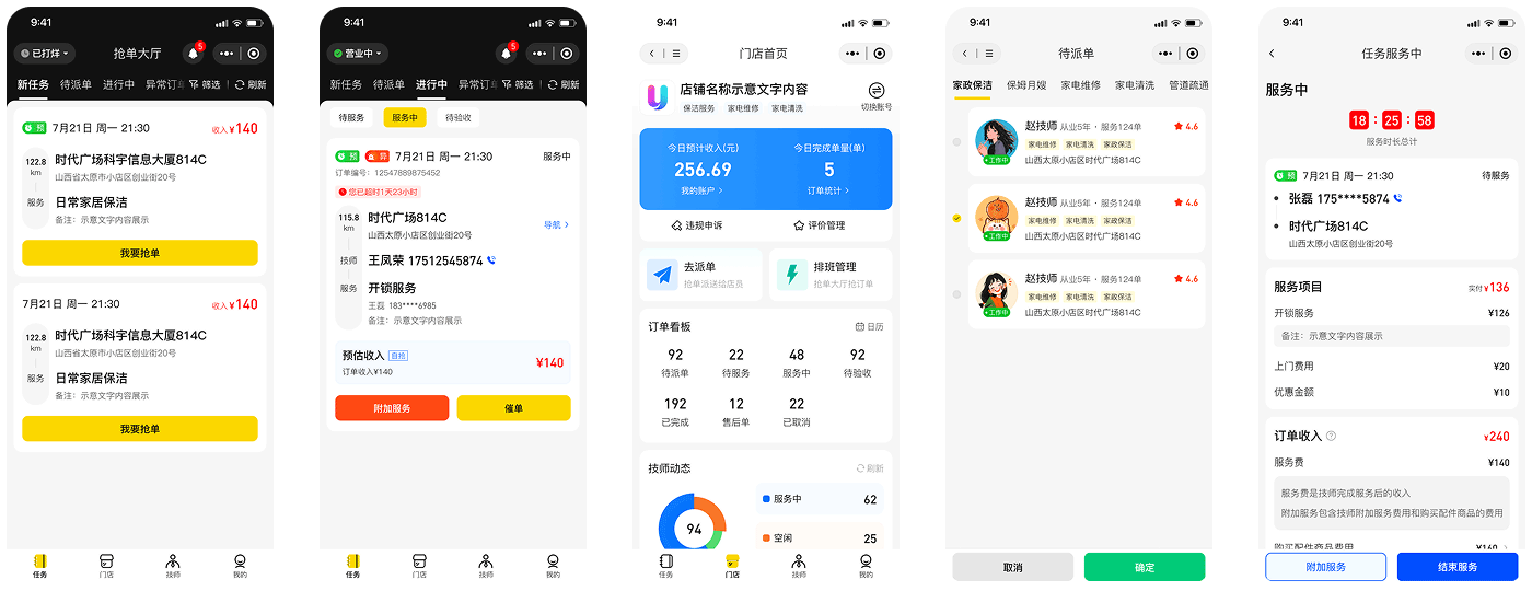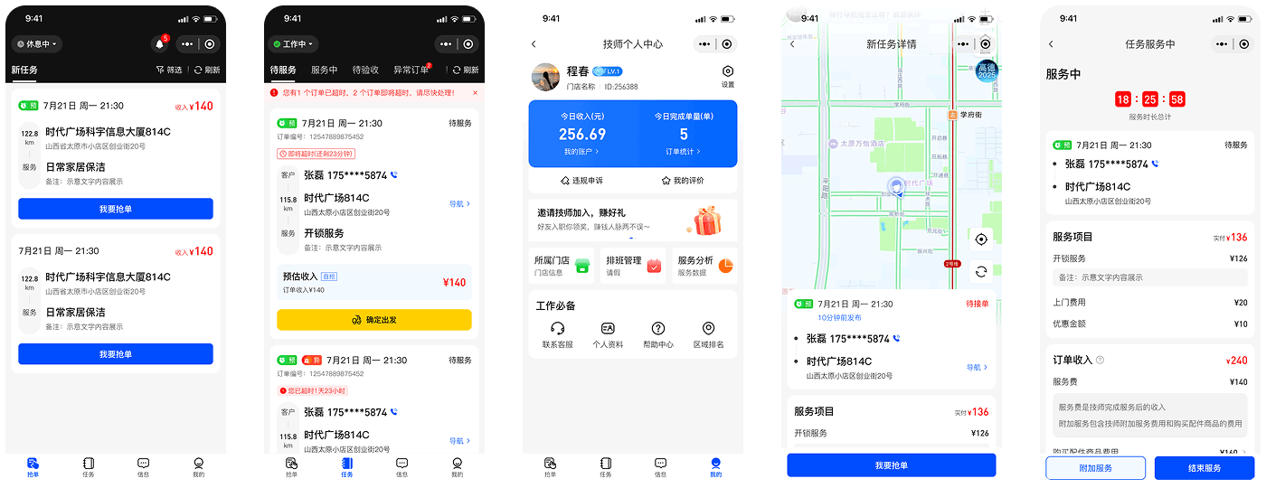 为服务人员提供智能接单、行程规划、服务记录和收入管理功能,提高工作效率。