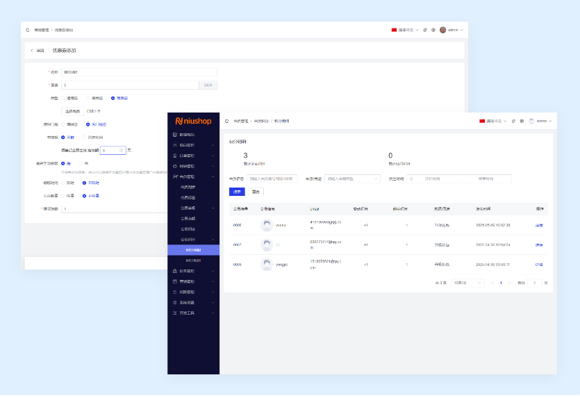 使用 NIUCLOUD-ADMIN 底层框架设计采用THINKPHP8、PHP8 语言搭建